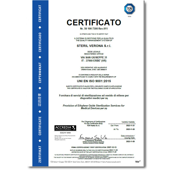 All Steril Verona sterilization plants are also FDA registered and accredited in Japan as “foreing medical device manufacturer” (MHLW)